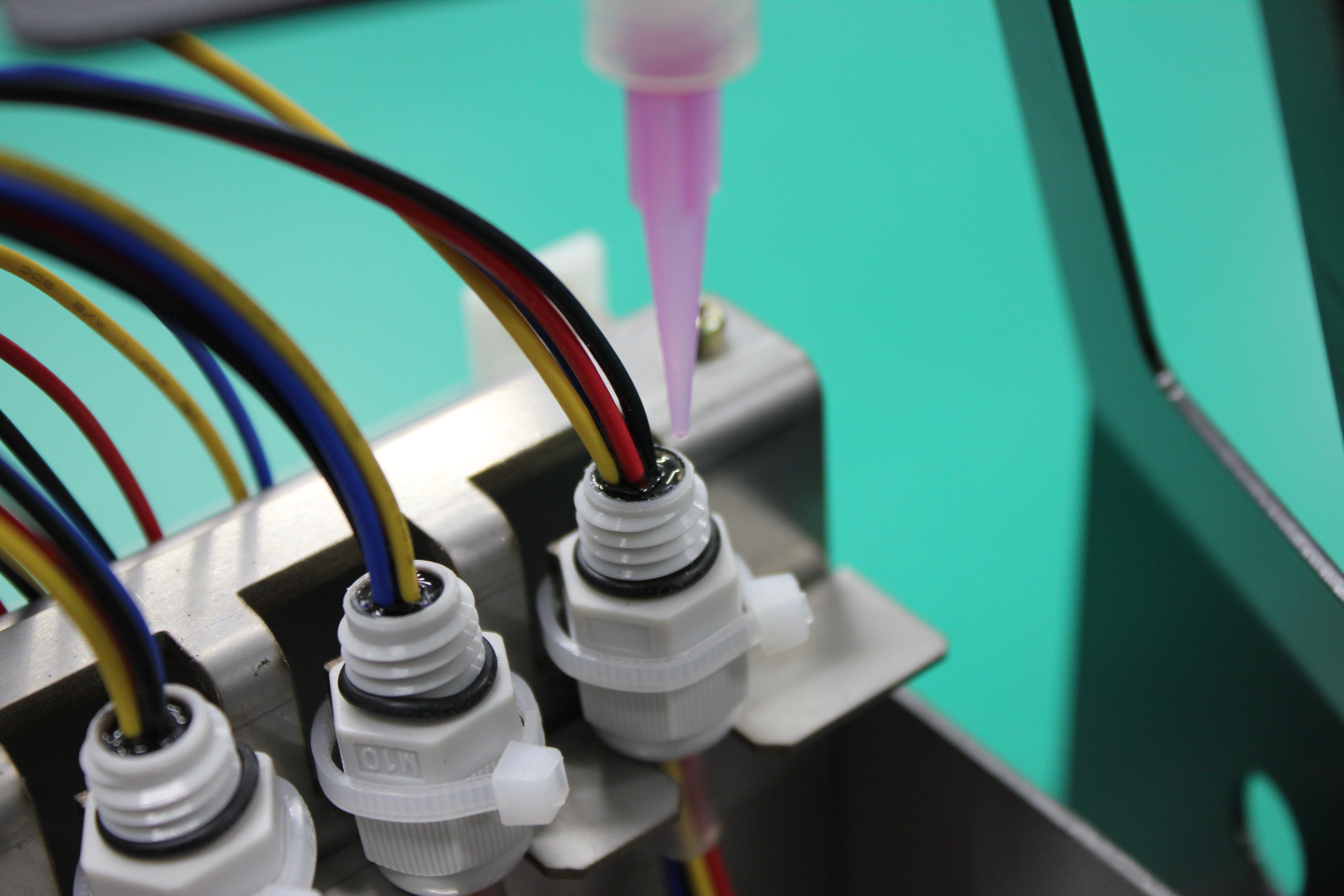 ケーブルポッティングは、 水分・粉塵の侵入防止や、振動・引張による断線防止を目的