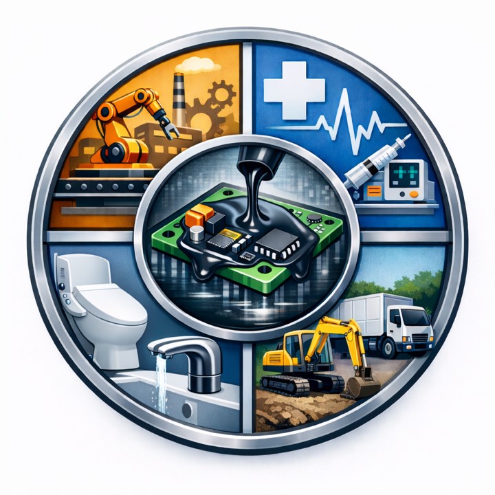 ポッティングは、産業機器・医療機器・民生機器・特殊車両・社会インフラ分野など、 耐環境性や高い信頼